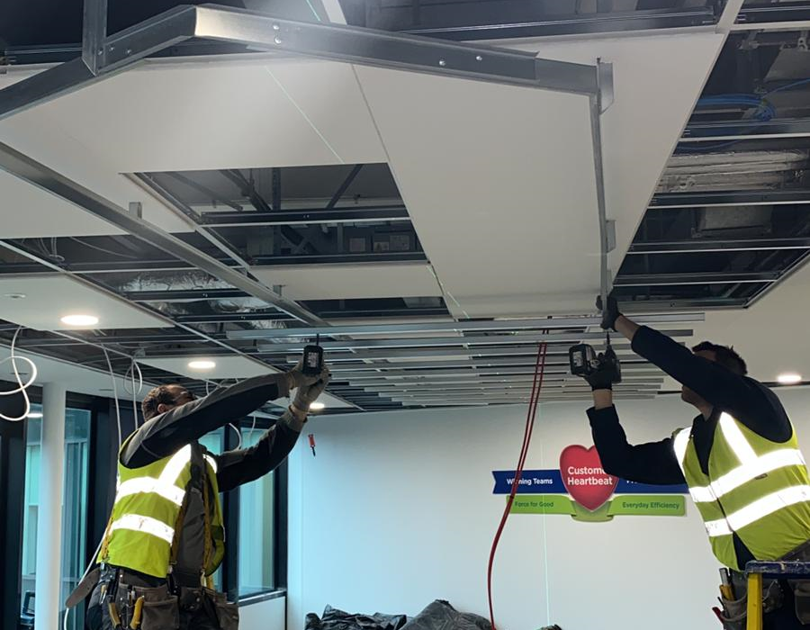 The 1st phase consisted of removal of existing walls and meeting rooms to create more work friendly areas throughout the 3 buildings. We would then install new walls, power supplies and decorate each floor out of hours prior to commencing works on phase 2.